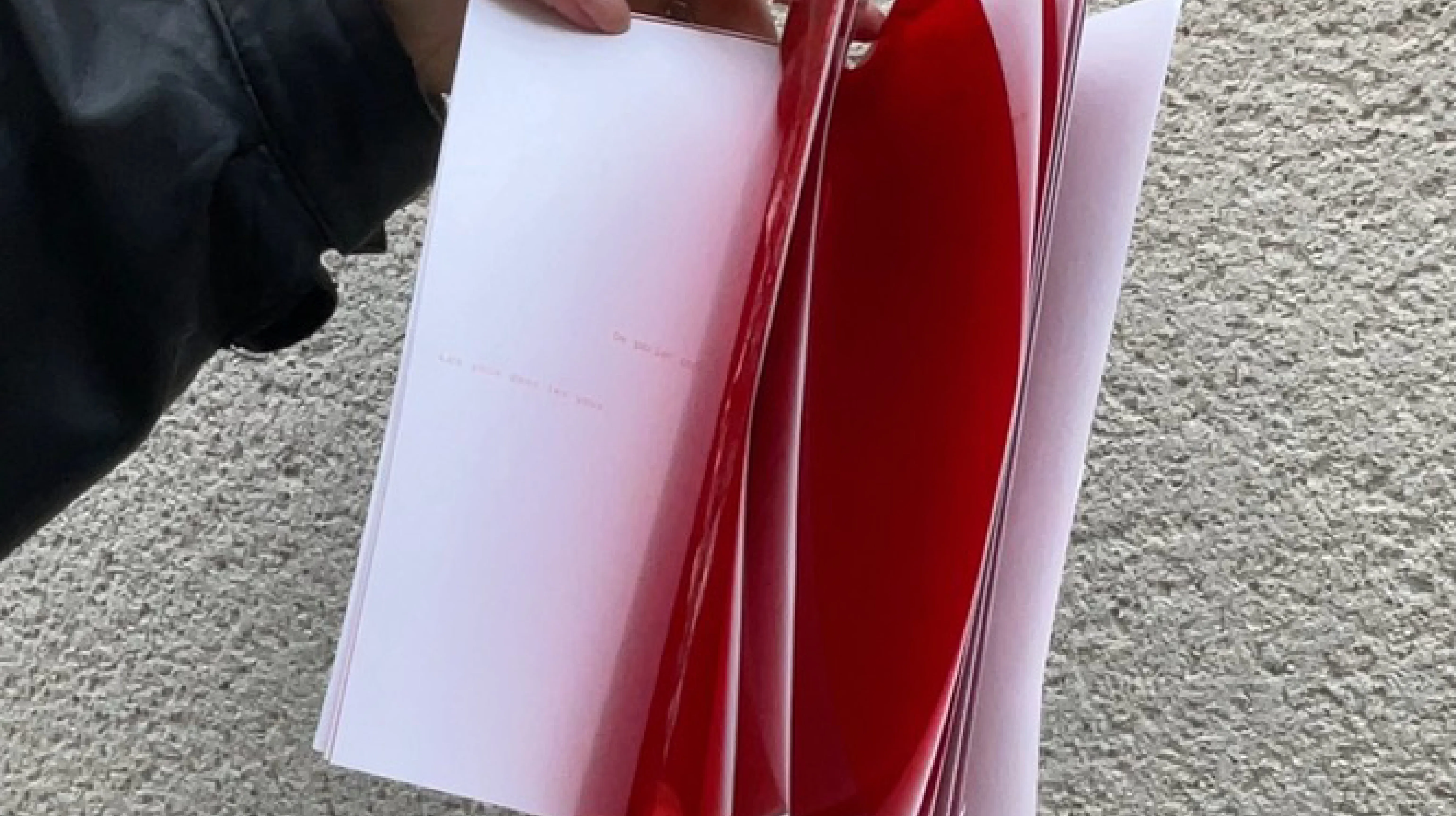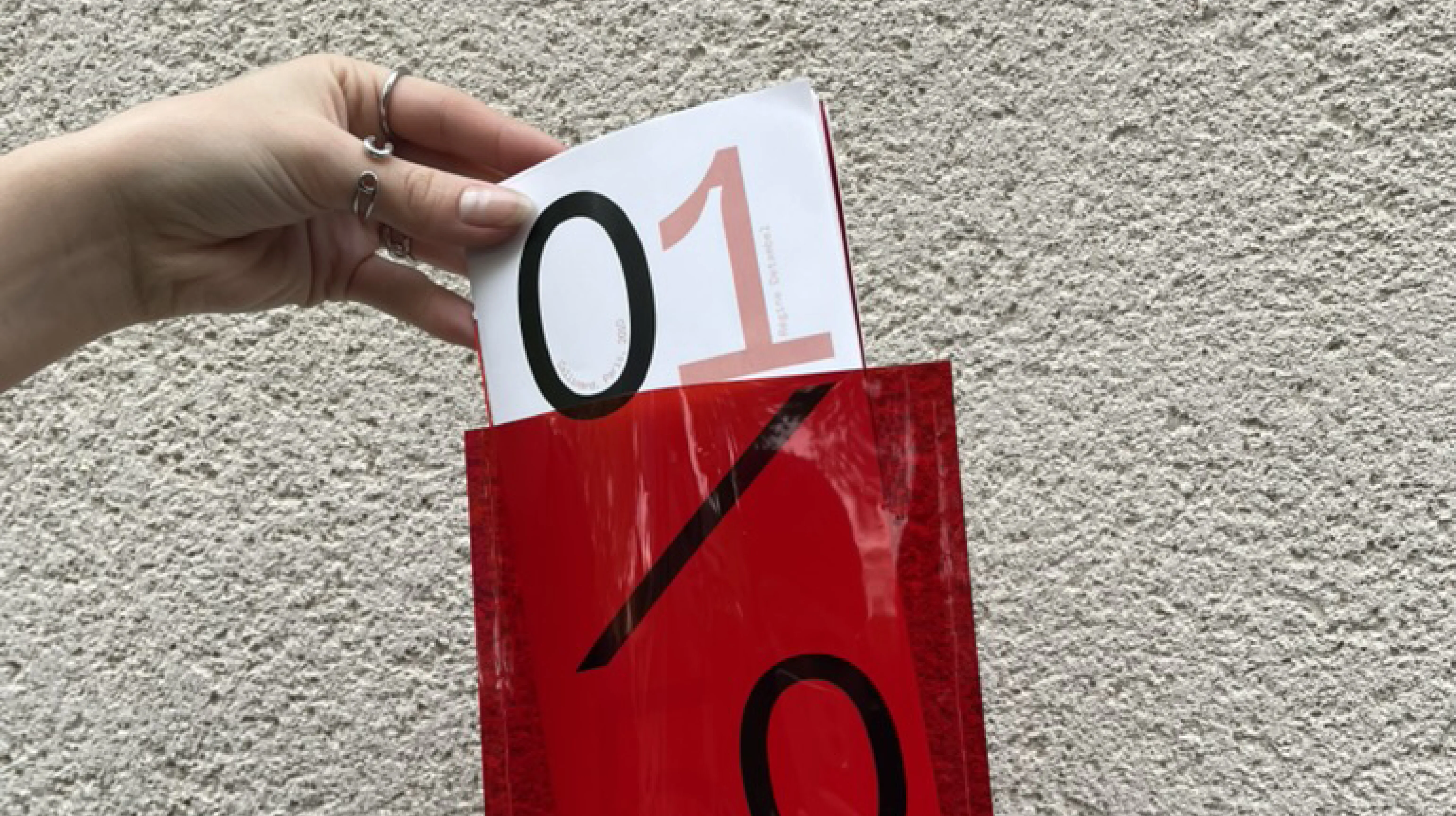 Drawing on the story behind the short story, we wanted to visually represent this inner dialogue. In the story, there are external physical descriptions things everyone can see and internal reflections. Red was a prominent color in the narrative, so we came up with the idea of using red gelatin. It allows us to highlight physical characteristics on the page. But when you turn the gelatin over, everything that is internal and not visible at first glance is revealed. The elongated format illustrates this tension.