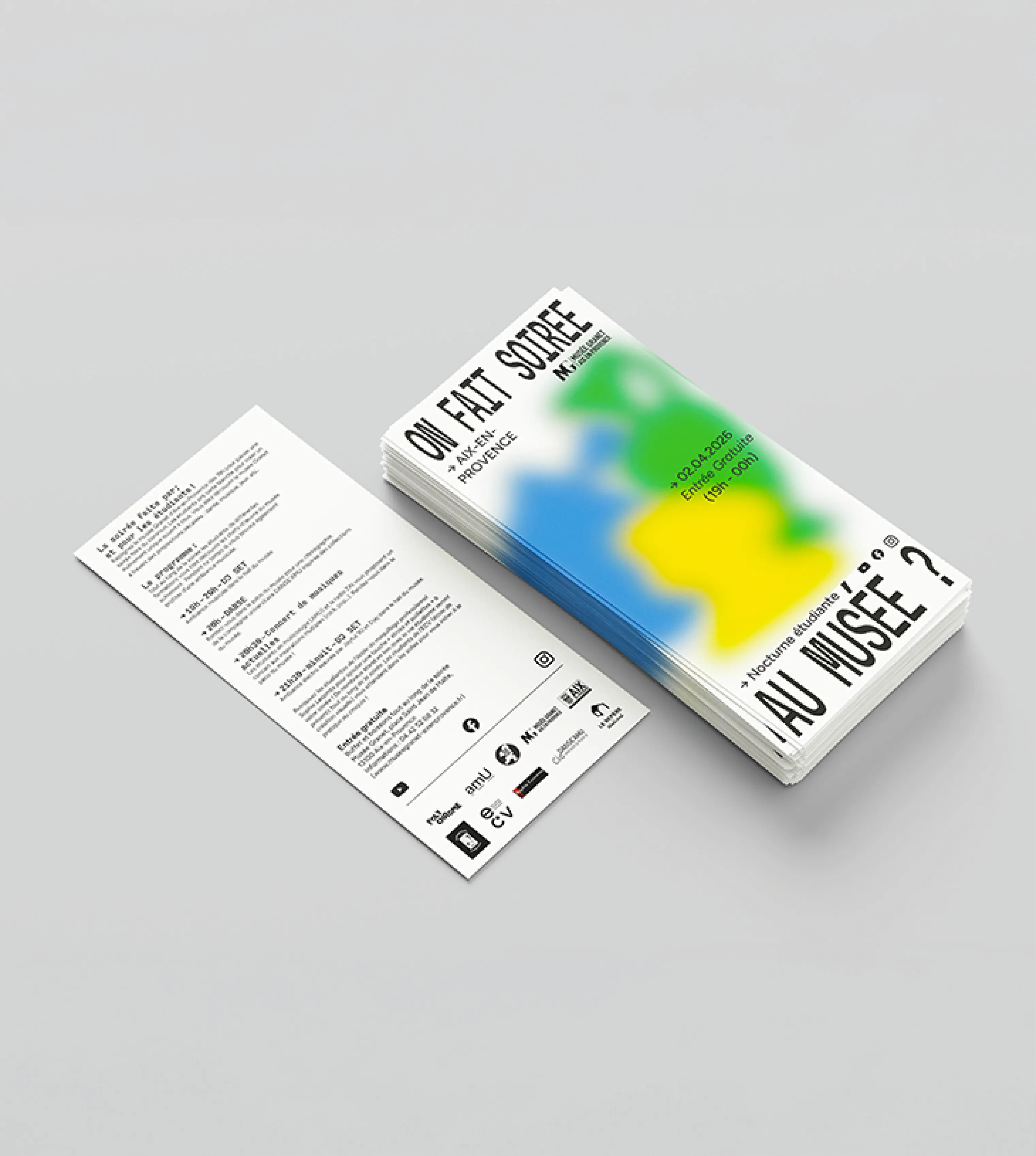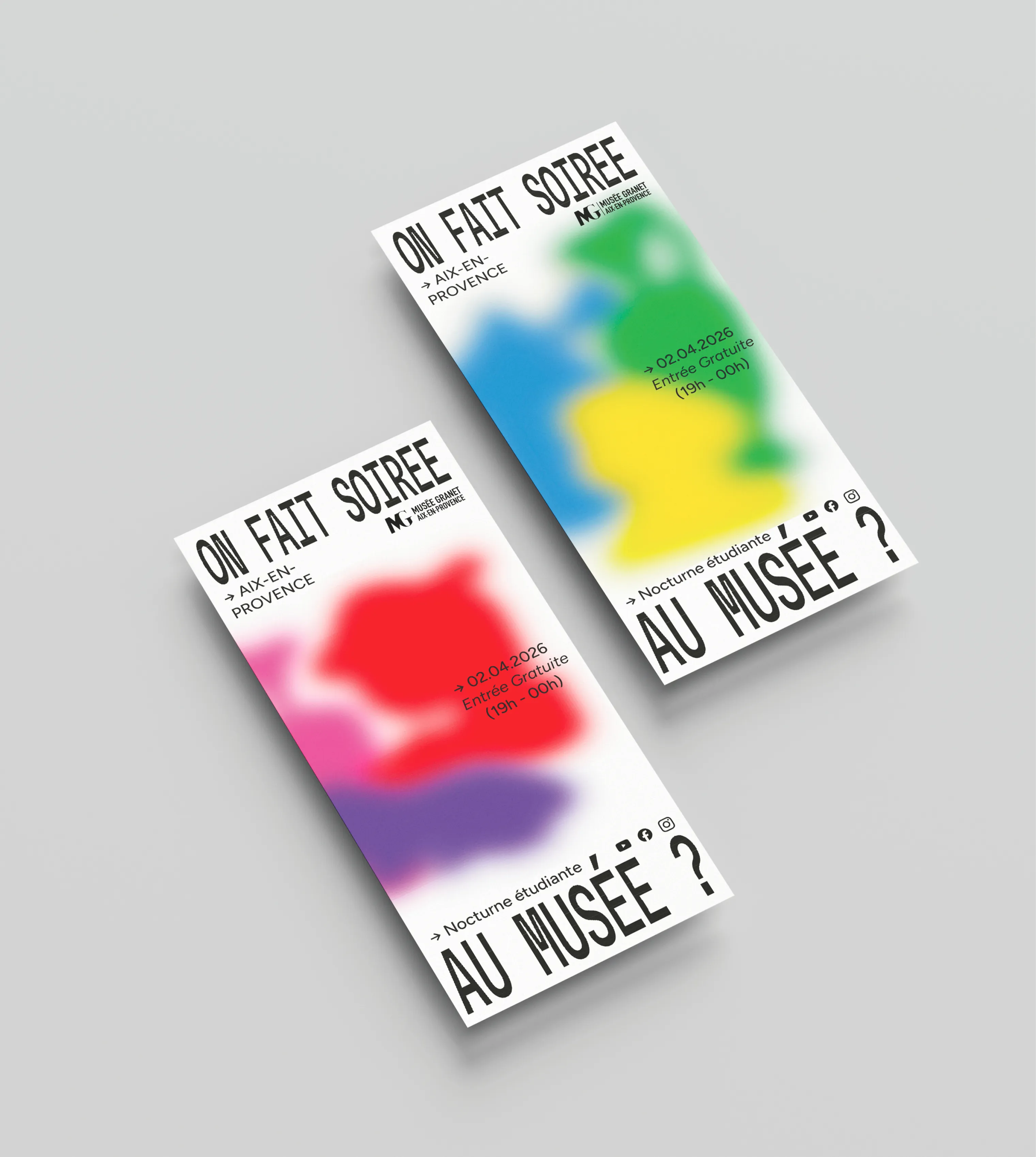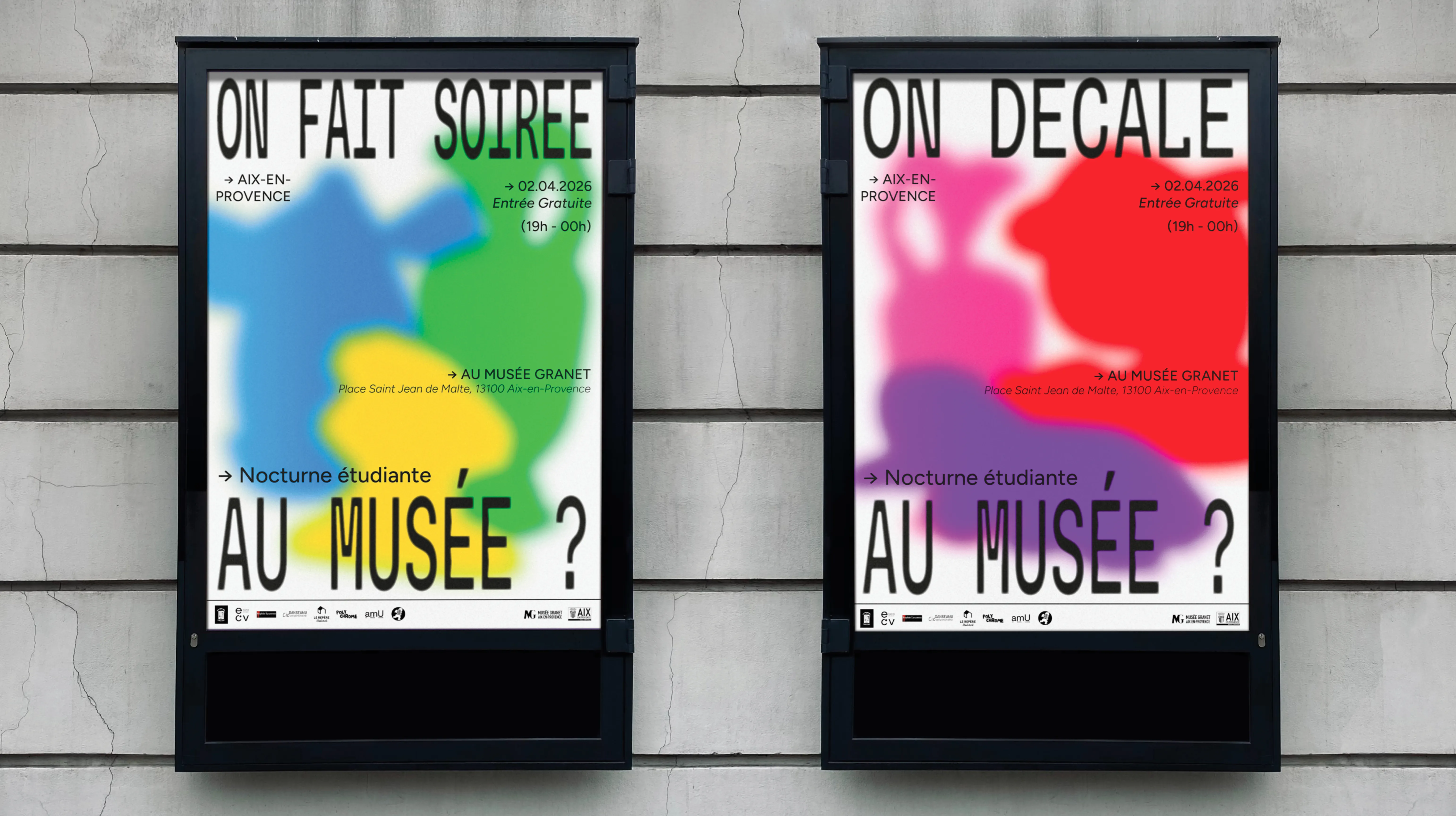 The Musée Granet in Aix-en-Provence invited our class to create promotional materials for a student night event held at the museum. The goal was to make the event more appealing to a young audience while maintaining the museum’s distinctive atmosphere. There was also a real challenge, since only one project out of all the pairs would be selected to actually be displayed on the streets of Aix-en-Provence.