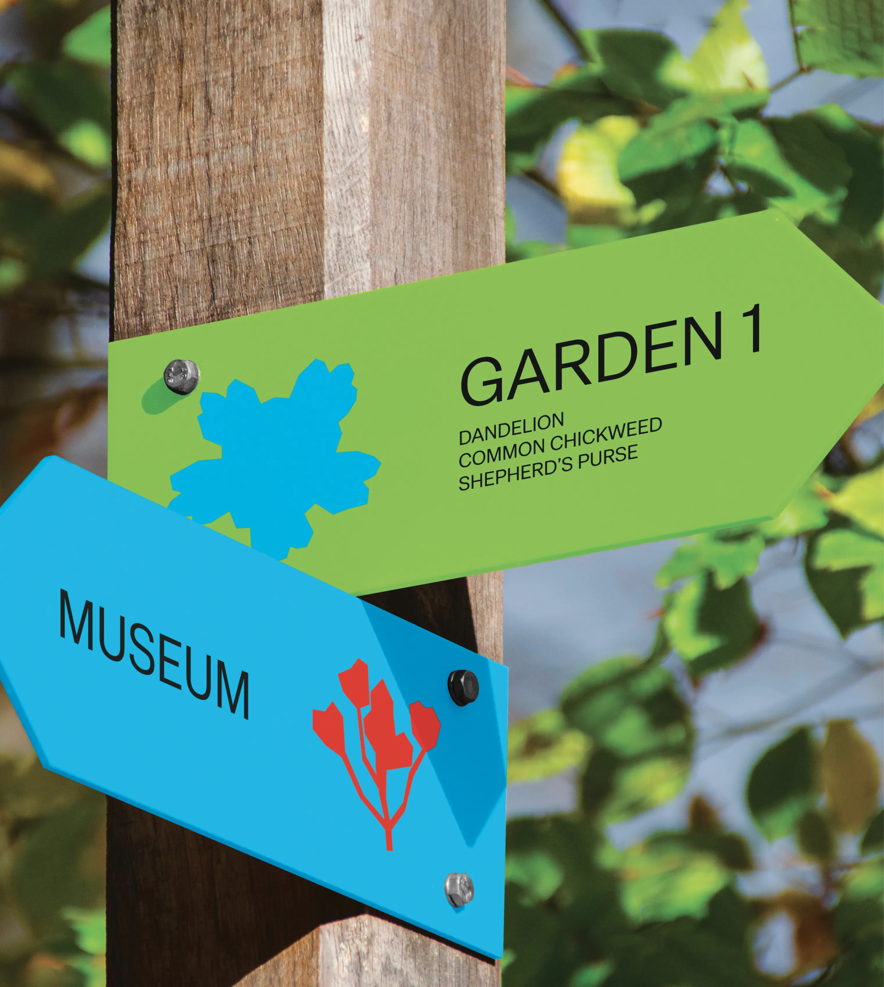 I chose to create a logo that varies with the different illustrations of weeds. Accompanying the museum’s creation is a system of posters, a landing page with essential information about the museum, and signage indicating where the garden is located, for example.